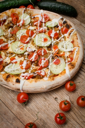 rajčica, sir, piletina, cherry rajčica, krastavci, jogurt dressing