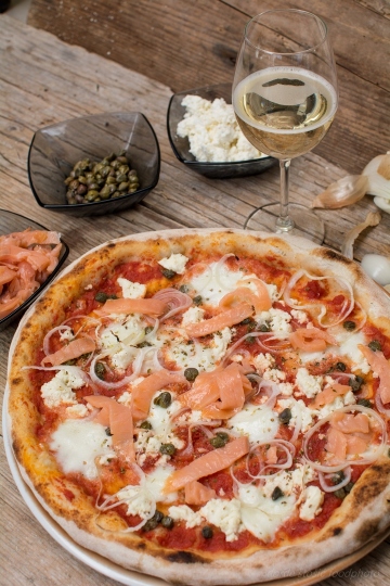 rajčica, skuta, mozzarella di bufala, luk, losos, kapari
